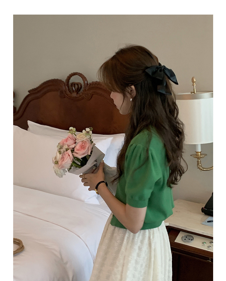 泡泡袖短袖针织上衣